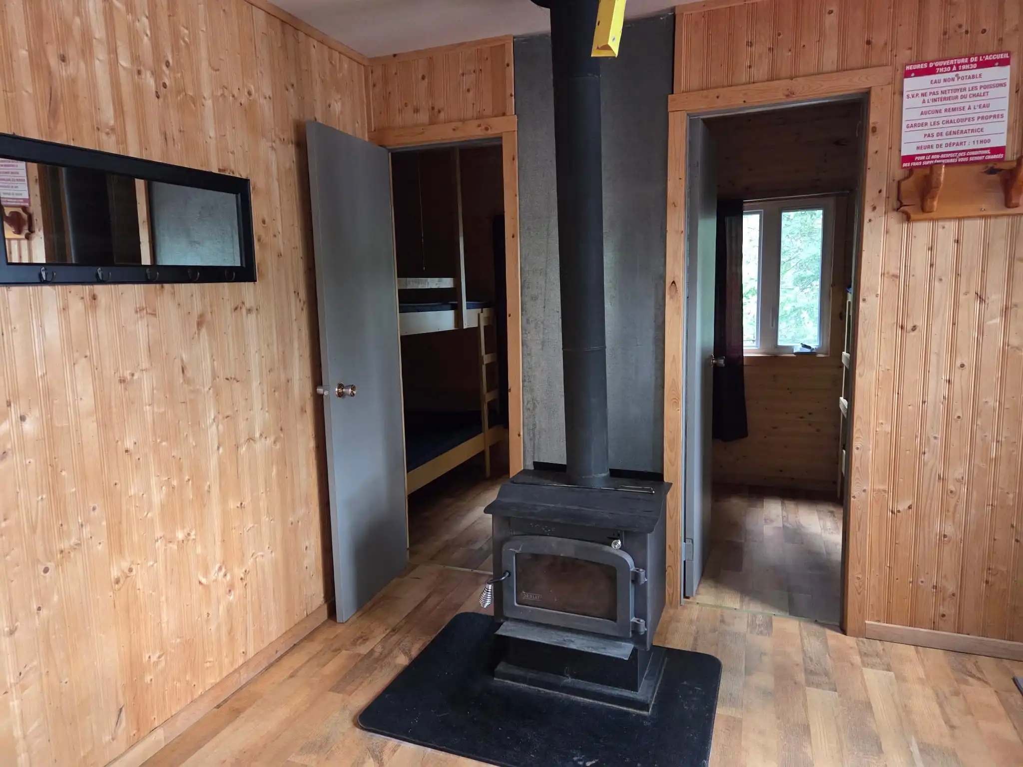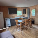 Conçu pour accueillir confortablement jusqu’à 6 invités, le chalet comprend deux chambres : une avec un lit Queen superposé douillet pour quatre personnes, et une autre avec deux lits simples superposés pour deux invités. Les commodités modernes assurent un séjour confortable, incluant une cuisine entièrement équipée avec vaisselle, réfrigérateur et cuisinière au gaz. Profite du plein air avec ton propre BBQ, détends-toi sur la terrasse, ou rassemble-toi autour du foyer pour des soirées mémorables sous les étoiles.