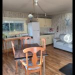 Designed to comfortably host 6 guests, the cottage features two comfortable bedrooms: one with a bunk queen bed for four people, and another with bunk single beds for two. The inviting interior includes a warm, wood stove for cozy evenings, creating a welcoming atmosphere after a day spent exploring the outdoors.